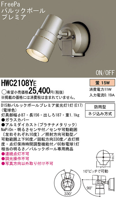 Panasonic ¥¢¥¦¥È¥É¥¢ HWC2108YE
