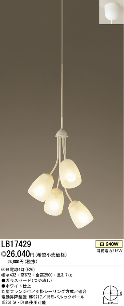 ÇòÇ®Åô240W 60·ÁÅŵå4Åô¡ÊE26¡Ë Éý¦Õ432¡¦¹â672¡¦Á´¹â2500¡¦½Å3.7kg ¥¬¥é¥¹¥»¡¼¥É¤Ä¤ä¾Ã¤· ¥Û¥ï¥¤¥È»Å¾å