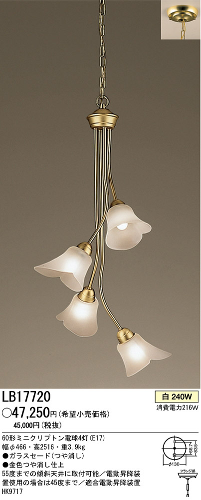 ÇòÇ®Åô240W 60·Á¥ß¥Ë¥¯¥ê¥×¥È¥óÅŵå4Åô¡ÊE17¡Ë Éý¦Õ466¡¦¹â2516¡¦½Å3.9kg ¥¬¥é¥¹¥»¡¼¥É¤Ä¤ä¾Ã¤· ¶â¿§¤Ä¤ä¾Ã¤·»Å¾å