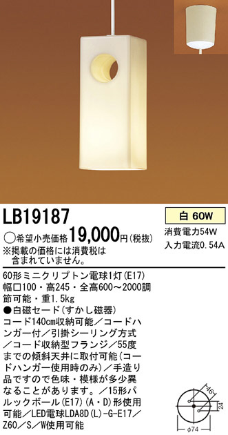Panasonic ¥Ú¥ó¥À¥ó¥È ÏÂÉ÷¾ÈÌÀ LB19187