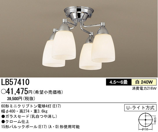 ÇòÇ®Åô240W 4.5¡Á6¾ö U-¥é¥¤¥ÈÊý¼° 60·Á¥ß¥Ë¥¯¥ê¥×¥È¥óÅŵå4Åô¡ÊE17¡Ë Éý¦Õ400¡¦¹â274¡¦½Å3.6kg ¥¬¥é¥¹¥»¡¼¥ÉÆýÇò¤Ä¤ä¾Ã¤· ¥¯¥í¡¼¥à»Å¾å