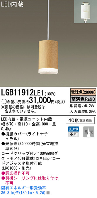 Panasonic LED ¥Ú¥ó¥À¥ó¥È LGB11912LE1
