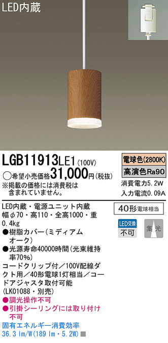 Panasonic LED ¥Ú¥ó¥À¥ó¥È LGB11913LE1