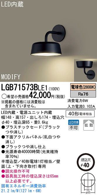 Panasonic LED ¥Ö¥é¥±¥Ã¥È LGB71573BLE1