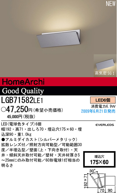 LED¡ÊÅŵ忧¡Ë6¸ÄW LED¡ÊÅŵ忧¥¿¥¤¥×¡Ë6¸Ä Éý192¡¦¹â71¡¦½Ð¤·¤í70¡¦Ëä¹þ·ê175¡ß60¡¦Ëä¹þ¿¼90¡¦½Å1.0kg ¥¢¥ë¥ß¥À¥¤¥«¥¹¥È¥·¥ë¥Ð¡¼¥á¥¿¥ê¥Ã¥¯