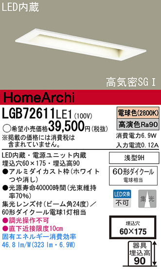 Panasonic LED ¥À¥¦¥ó¥é¥¤¥È LGB72611LE1