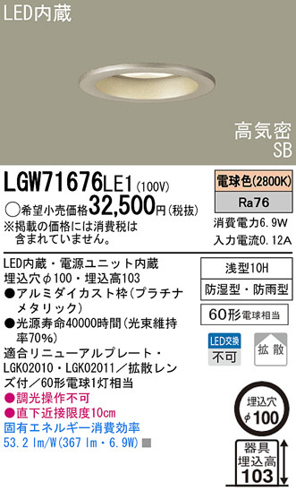 Panasonic LED ¥Ð¥¹¥é¥¤¥È ¥À¥¦¥ó¥é¥¤¥È LGW71676LE1