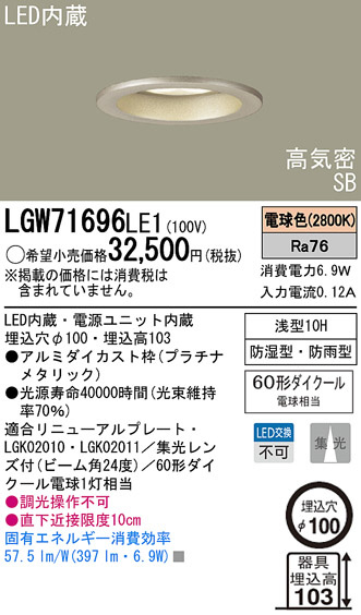 Panasonic LED ¥¢¥¦¥È¥É¥¢ ¥À¥¦¥ó¥é¥¤¥È LGW71696LE1