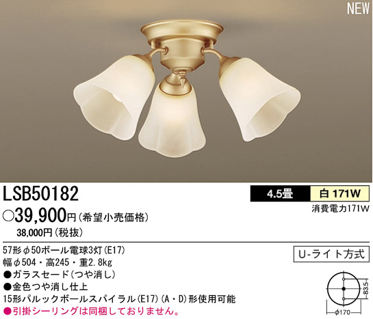 ÇòÇ®Åô171W 4.5¾ö U-¥é¥¤¥ÈÊý¼° 57·Á¦Õ50¥Ü¡¼¥ëÅŵå3Åô¡ÊE17¡Ë Éý¦Õ504¡¦¹â245¡¦½Å2.8kg ¥¬¥é¥¹¥»¡¼¥É¤Ä¤ä¾Ã¤· ¶â¿§¤Ä¤ä¾Ã¤·»Å¾å