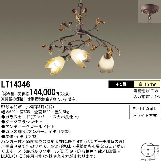 ÇòÇ®Åô171W 4.5¾ö World Craft¡Ê¥¤¥¿¥ê¥¢¡Ë U-¥é¥¤¥ÈÊý¼° 57·Á¦Õ50¥Ü¡¼¥ëÅŵå3Åô¡ÊE17¡Ë Éý¦Õ600¡¦¹â505¡¦Á´¹â1580¡¦½Å3.5kg ¥¬¥é¥¹¥»¡¼¥É¥¢¥ó¥Ð¡¼¡¦¥¹¥«¥ÜÉ÷»Å¾å ¥À¡¼¥¯¥Ö¥é¥¦¥ó»Å¾å ¥¢¥ó¥Æ¥£¡¼¥¯¥´¡¼¥ë¥É»Å¾å ¥¬¥é¥¹¾þ¤ê(¥¢¥ó¥Ð¡¼)