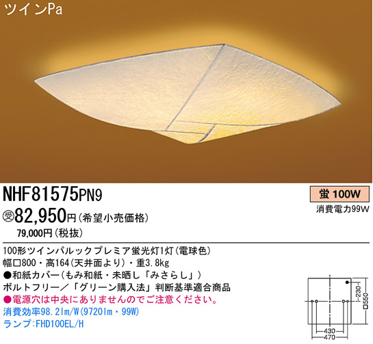 ¡üÃí¡ËÅŸ»·ê¤ÏÃæ±û¤Ë¤¢¤ê¤Þ¤»¤ó¤Î¤Ç¤´Ãí°Õ¤¯¤À¤µ¤¤¡£ ¾ÃÈñ¸úΨ98.2lm/W(9720lm¡¦99W) ¥é¥ó¥×:FHD100EL¡¿H