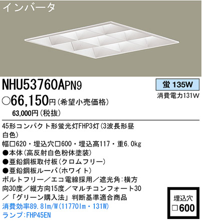 ¡ü¼×¸÷³Ñ¡§²£Êý¸þ30ÅÙ¡¿½ÄÊý¸þ15ÅÙ ¾ÃÈñ¸úΨ89.8lm/W(11770lm¡¦131W) ¥é¥ó¥×:FHP45EN ¥Þ¥ë¥Á¥³¥ó¥Õ¥©¡¼¥È30