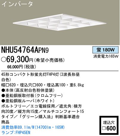 ¡ü¼×¸÷³Ñ¡§²£Êý¸þ20ÅÙ¡¿½ÄÊý¸þ15ÅÙ ¾ÃÈñ¸úΨ89.1lm/W(14700lm¡¦165W) ¥é¥ó¥×:FHP45EN ¥Þ¥ë¥Á¥³¥ó¥Õ¥©¡¼¥È15¥¿¥¤¥×