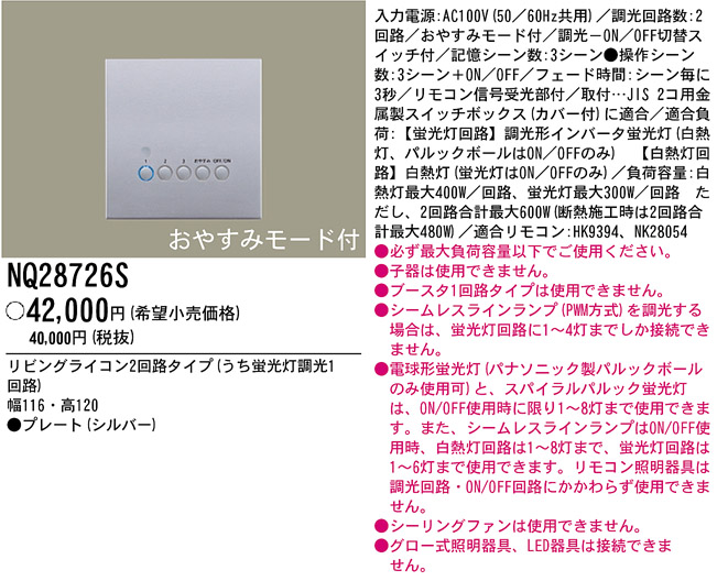 ¥ê¥Ó¥ó¥°¥é¥¤¥³¥ó2²óÏ©¥¿¥¤¥×¡Ê¤¦¤Á·Ö¸÷ÅôÄ´¸÷1²óÏ©¡Ë Éý116¡¦¹â120 ¥×¥ì¡¼¥È¥·¥ë¥Ð¡¼ ÆþÎÏÅŸ»¡§AC100V¡Ê50¡¿60Hz¶¦ÍÑ¡Ë Ä´¸÷²óÏ©¿ô¡§2²óÏ© ¤ª¤ä¤¹¤ß¥â¡¼¥ÉÉÕ Ä´¸÷¡ÝON¡¿OFFÀÚÂØ¥¹¥¤¥Ã¥ÁÉÕ µ²±¥·¡¼¥ó¿ô¡§3¥·¡¼¥ó Áàºî¥·¡¼¥ó¿ô¡§3¥·¡¼¥ó¡ÜON¡¿OFF ¥Õ¥§¡¼¥É»þ´Ö¡§¥·¡¼¥óËè¤Ë3Éà ¥ê¥â¥³¥ó¿®¹æ¼õ¸÷ÉôÉÕ