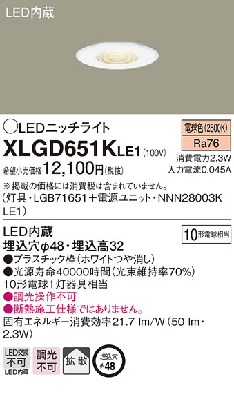 Panasonic ¥À¥¦¥ó¥é¥¤¥È XLGD651KLE1