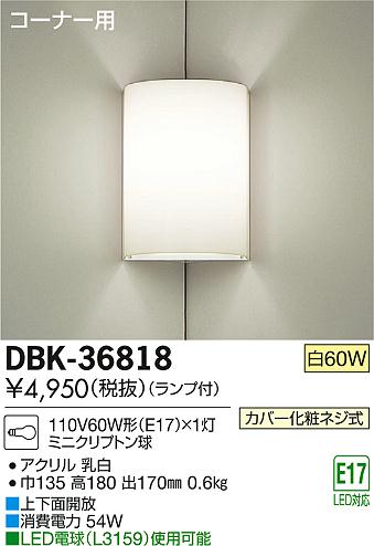µ¡Ç½/¾¡§¢£¾å²¼Ì̳«Êü|¢£LEDÅŵå¡ÊL3159¡Ë»ÈÍѲÄǽ|¢¨°ìÈÌ¥¿¥¤¥×¡ÊDBK-36817¡Ë|¾ÃÈñÅÅÎÏ 54W|¥³¡¼¥Ê¡¼ÍÑ