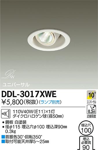 DAIKO Âç¸÷Åŵ¡ ¥æ¥Ë¥Ð¡¼¥µ¥ë ¥À¥¦¥ó¥é¥¤¥È DDL-3017XWE