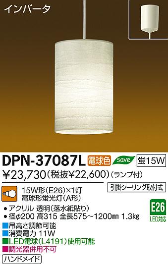 DAIKO Âç¸÷Åŵ¡ ¾®·¿¥Ú¥ó¥À¥ó¥È ÏÂÉ÷¾ÈÌÀ DPN-37087L