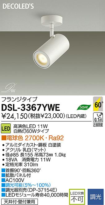 DAIKO Âç¸÷Åŵ¡ LED¥¹¥Ý¥Ã¥È¥é¥¤¥È DECOLED¡ÇS(LED¾ÈÌÀ) DSL-3367YWE