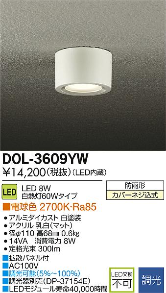 DAIKO Âç¸÷Åŵ¡ LED¸®²¼¥·¡¼¥ê¥ó¥°¥é¥¤¥È DECOLED¡ÇS(LED¾ÈÌÀ) ¥À¥¦¥ó¥é¥¤¥È ¥¢¥¦¥È¥É¥¢ DOL-3609YW