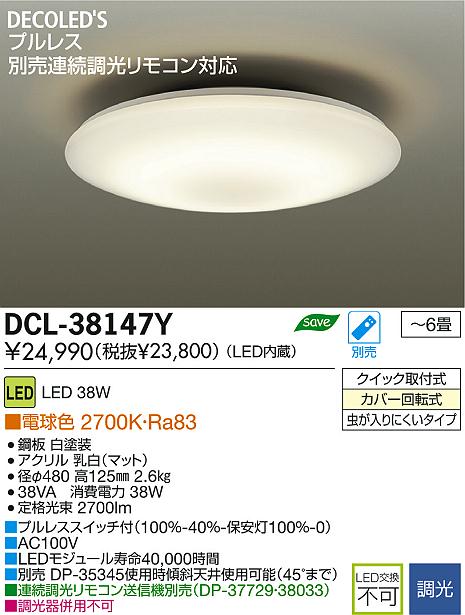 DAIKO Âç¸÷Åŵ¡ LED DECOLED¡ÇS(LED¾ÈÌÀ) ¥·¡¼¥ê¥ó¥° DCL-38147Y