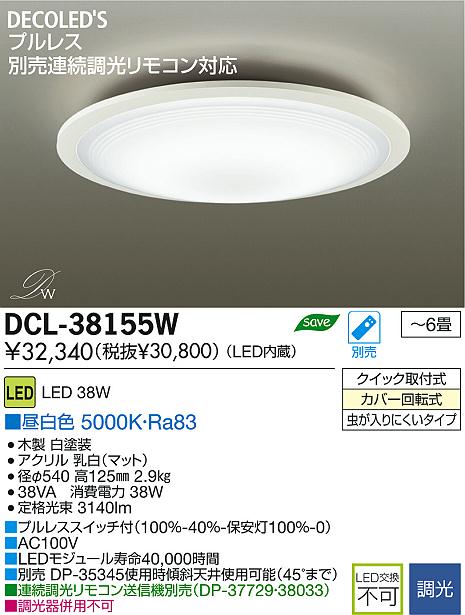 DAIKO Âç¸÷Åŵ¡ LED DECOLED¡ÇS(LED¾ÈÌÀ) ¥·¡¼¥ê¥ó¥° DCL-38155W
