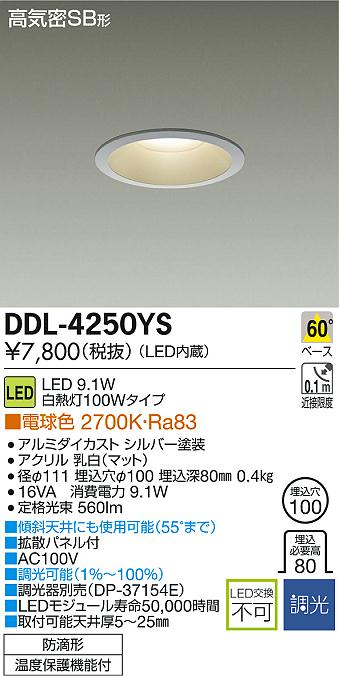 DAIKO Âç¸÷Åŵ¡ LED¥À¥¦¥ó¥é¥¤¥È(¸®²¼·óÍÑ) DECOLED¡ÇS(LED¾ÈÌÀ) ¥¢¥¦¥È¥É¥¢ DDL-4250YS