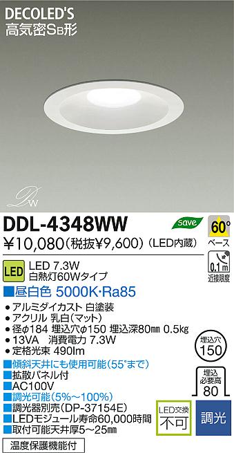 DAIKO Âç¸÷Åŵ¡ LED DECOLED¡ÇS(LED¾ÈÌÀ) ¥À¥¦¥ó¥é¥¤¥È DDL-4348WW