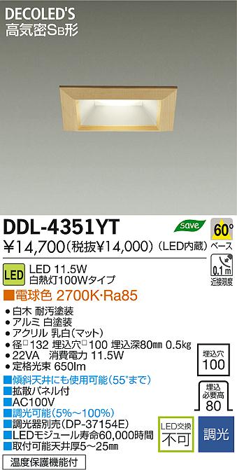 DAIKO Âç¸÷Åŵ¡ LED DECOLED¡ÇS(LED¾ÈÌÀ) ¥À¥¦¥ó¥é¥¤¥È ÏÂÉ÷¾ÈÌÀ DDL-4351YT