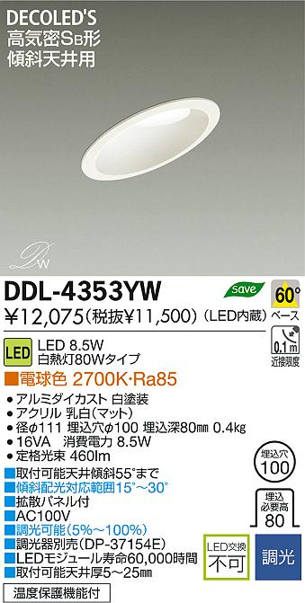 DAIKO Âç¸÷Åŵ¡ LED·¹¼ÐÅ·°æÍÑ¥À¥¦¥ó¥é¥¤¥È DECOLED¡ÇS(LED¾ÈÌÀ) DDL-4353YW