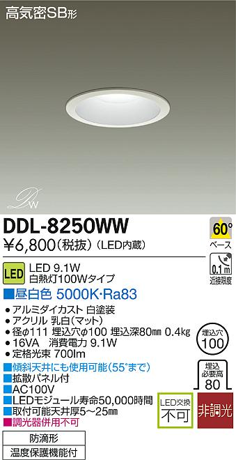 DAIKO Âç¸÷Åŵ¡ LED¥À¥¦¥ó¥é¥¤¥È(¸®²¼·óÍÑ) DECOLED¡ÇS(LED¾ÈÌÀ) ¥¢¥¦¥È¥É¥¢ DDL-8250WW