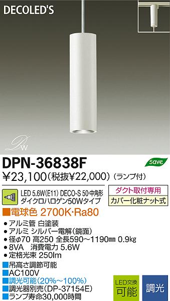 DAIKO Âç¸÷Åŵ¡ LED¾®·¿¥Ú¥ó¥À¥ó¥È DECOLED¡ÇS(LED¾ÈÌÀ) DPN-36838F
