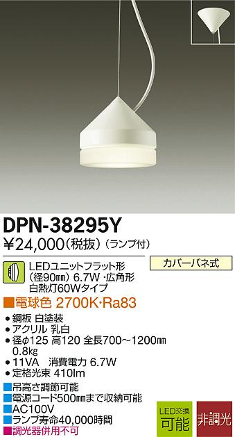 DAIKO Âç¸÷Åŵ¡ LED¾®·¿¥Ú¥ó¥À¥ó¥È DECOLED¡ÇS(LED¾ÈÌÀ) DPN-38295Y