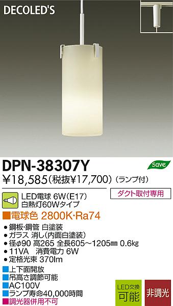 DAIKO Âç¸÷Åŵ¡ LED¾®·¿¥Ú¥ó¥À¥ó¥È DECOLED¡ÇS(LED¾ÈÌÀ) DPN-38307Y