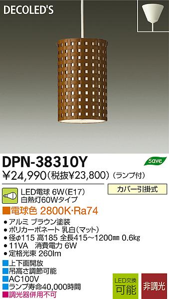 DAIKO Âç¸÷Åŵ¡ LED¾®·¿¥Ú¥ó¥À¥ó¥È DECOLED¡ÇS(LED¾ÈÌÀ) DPN-38310Y