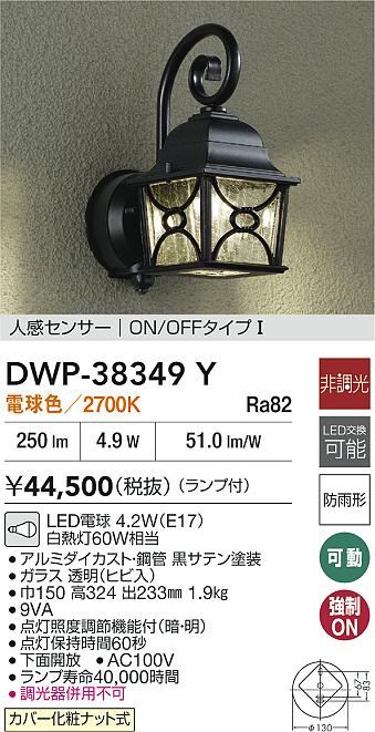 DAIKO Âç¸÷Åŵ¡ ¿Í´¶¥»¥ó¥µ¡¼ÉÕ¥¢¥¦¥È¥É¥¢¥é¥¤¥È DWP-38349Y