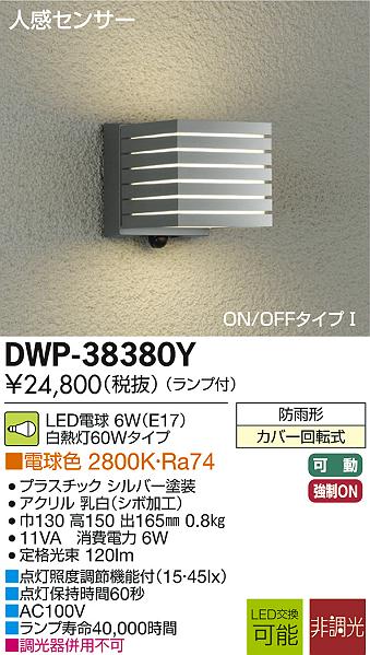 DAIKO Âç¸÷Åŵ¡ ¿Í´¶¥»¥ó¥µ¡¼ÉÕLED¥¢¥¦¥È¥É¥¢¥é¥¤¥È DECOLED¡ÇS(LED¾ÈÌÀ) ¥Ö¥é¥±¥Ã¥È DWP-38380Y