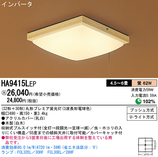 Panasonic ¥·¡¼¥ê¥ó¥° ÏÂÉ÷¾ÈÌÀ HA9415LEP