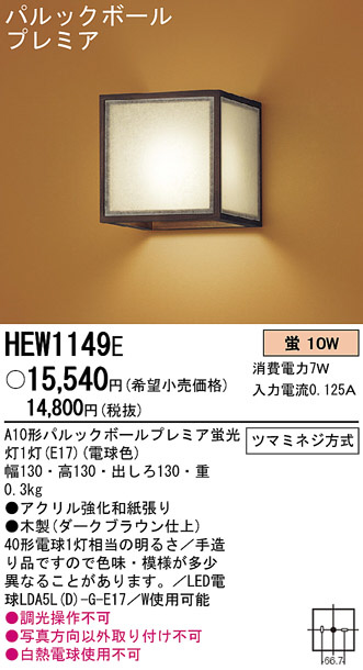 Panasonic ¥Ö¥é¥±¥Ã¥È ÏÂÉ÷¾ÈÌÀ HEW1149E