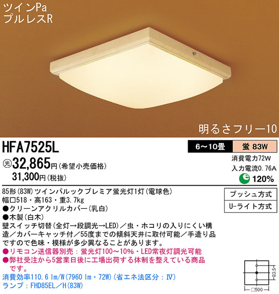 Panasonic ¥·¡¼¥ê¥ó¥° ÏÂÉ÷¾ÈÌÀ HFA7525L