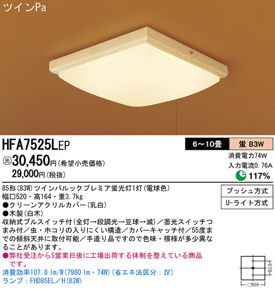 Panasonic ¥·¡¼¥ê¥ó¥° ÏÂÉ÷¾ÈÌÀ HFA7525LEP