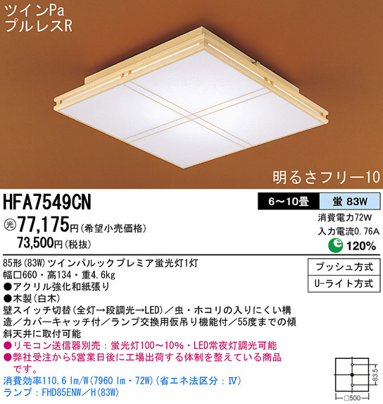Panasonic ¥·¡¼¥ê¥ó¥° ÏÂÉ÷¾ÈÌÀ HFA7549CN