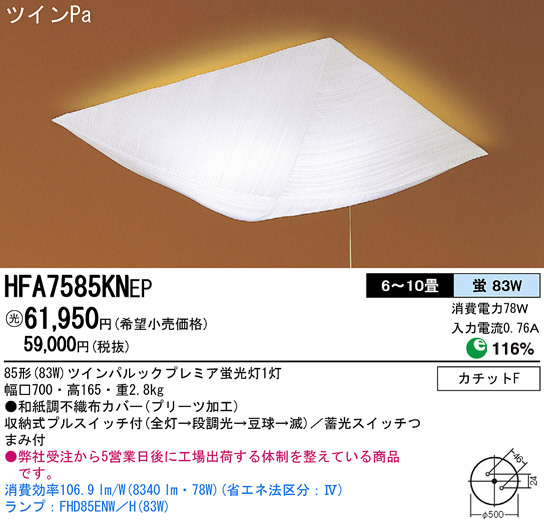 Panasonic ¥·¡¼¥ê¥ó¥° ÏÂÉ÷¾ÈÌÀ HFA7585KNEP