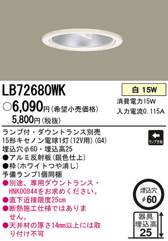 Panasonic ¥À¥¦¥ó¥é¥¤¥È LB72680WK