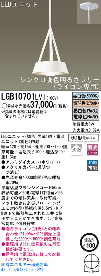 Panasonic LED ¥Ú¥ó¥À¥ó¥È LGB10701LV1