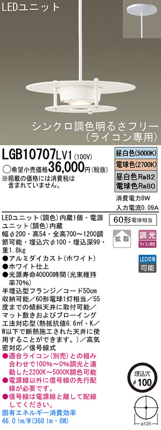 Panasonic LED ¥Ú¥ó¥À¥ó¥È LGB10707LV1