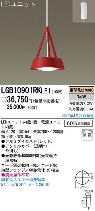 Panasonic LED ¥Ú¥ó¥À¥ó¥È LGB10901RKLE1