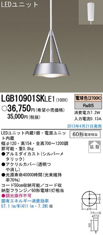 Panasonic LED ¥Ú¥ó¥À¥ó¥È LGB10901SKLE1