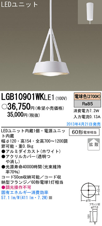 Panasonic LED ¥Ú¥ó¥À¥ó¥È LGB10901WKLE1