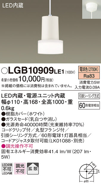 Panasonic LED ¥Ú¥ó¥À¥ó¥È¥é¥¤¥È LGB10909LE1